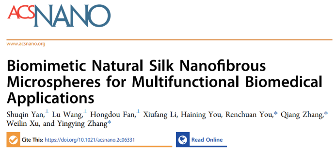 该工作以“Biomimetic Natural Silk Nanofibrous Microspheres for Multifunctional Biomedical Applications”为题发表在《ACS Nano》上,通讯作者为海角网