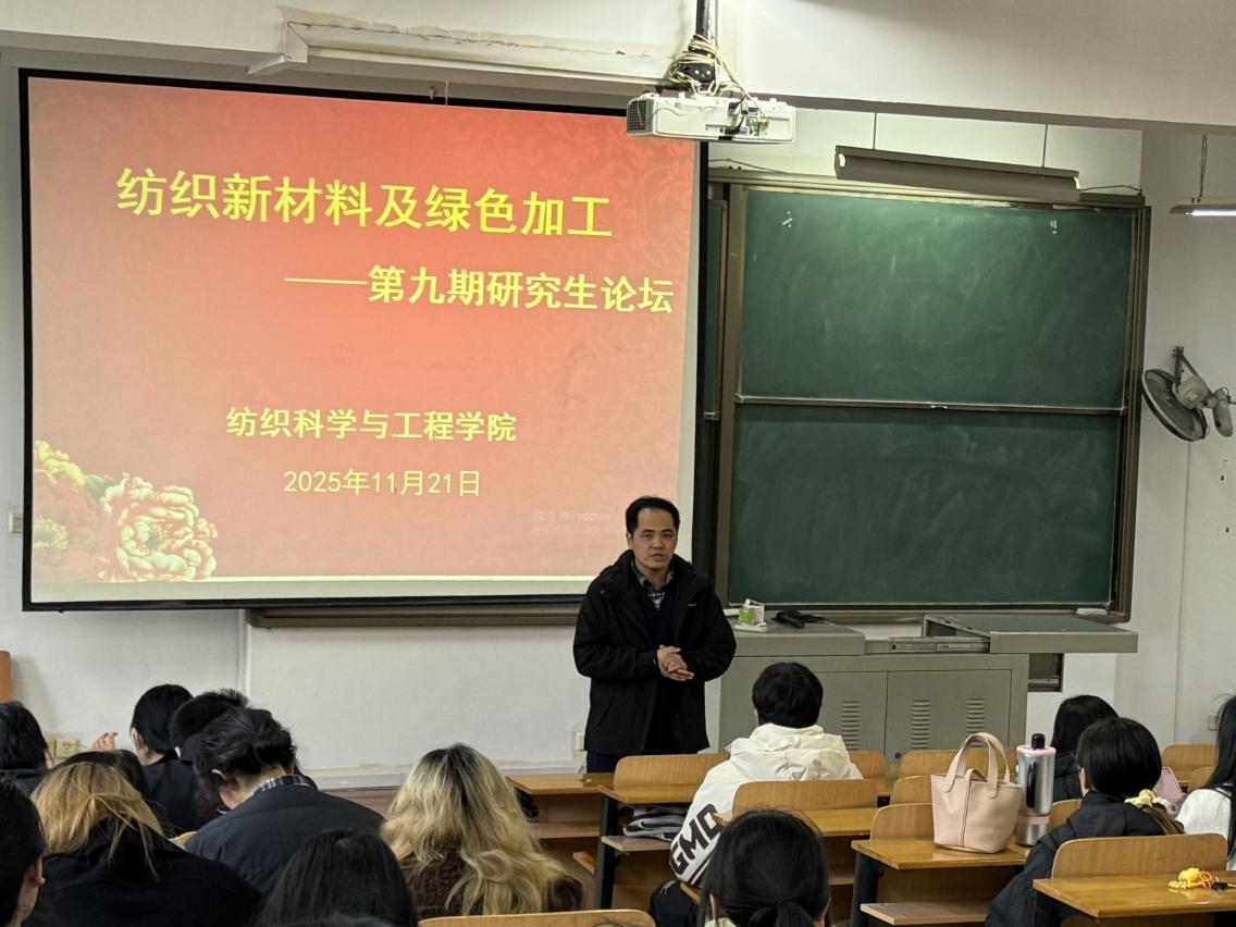 的科研工作,加强师生间的学术交流,提高研究生素质和学术氛围,海角网于11月21日下午14:30举办了第九期“纺织新材料及绿色加工”研究生论坛。