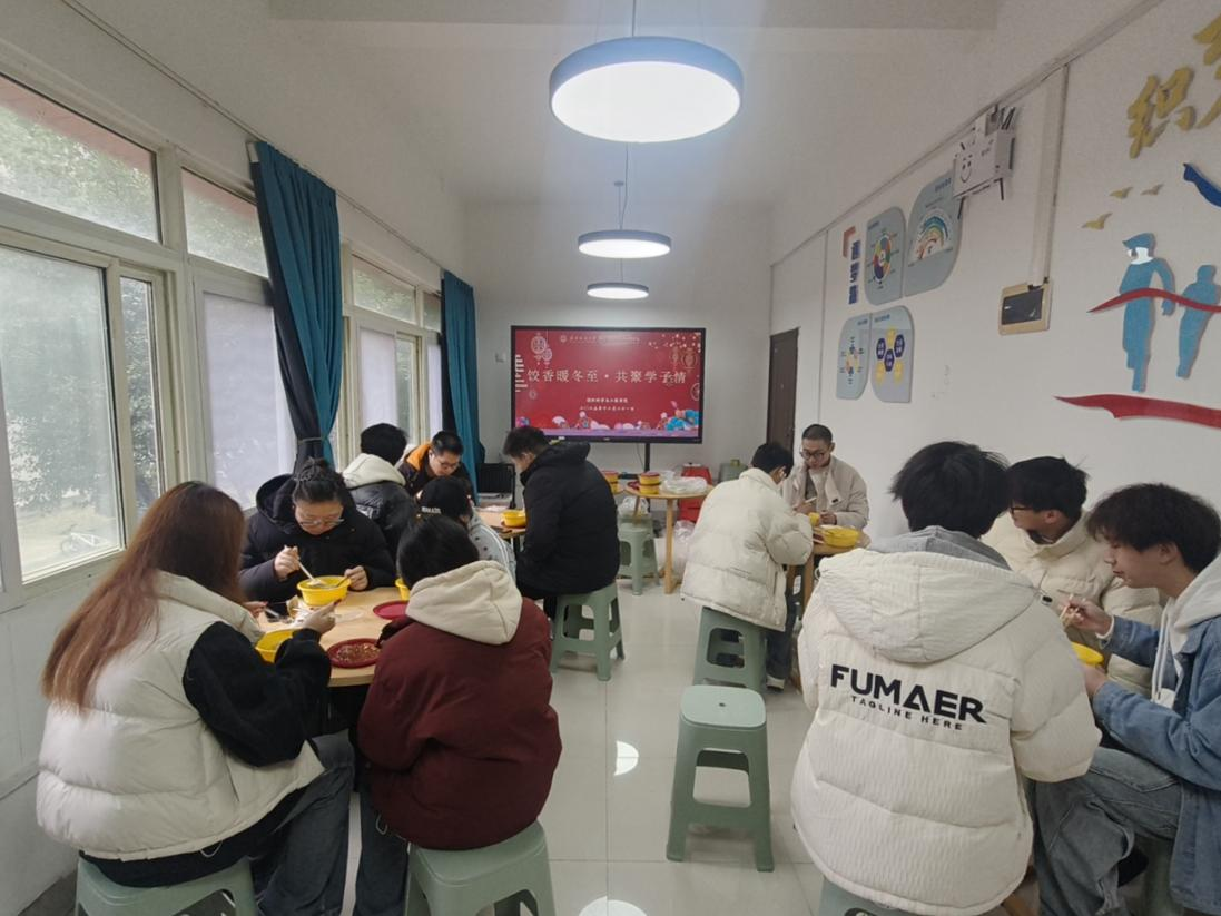 精心准备了各式美味饺子。师生们围坐在一起,一边品尝着香气四溢的饺子,一边亲切交流,畅谈近期的学习生活、家乡的冬至习俗以及对未来的展望。现场欢声笑语不断,其乐融融。