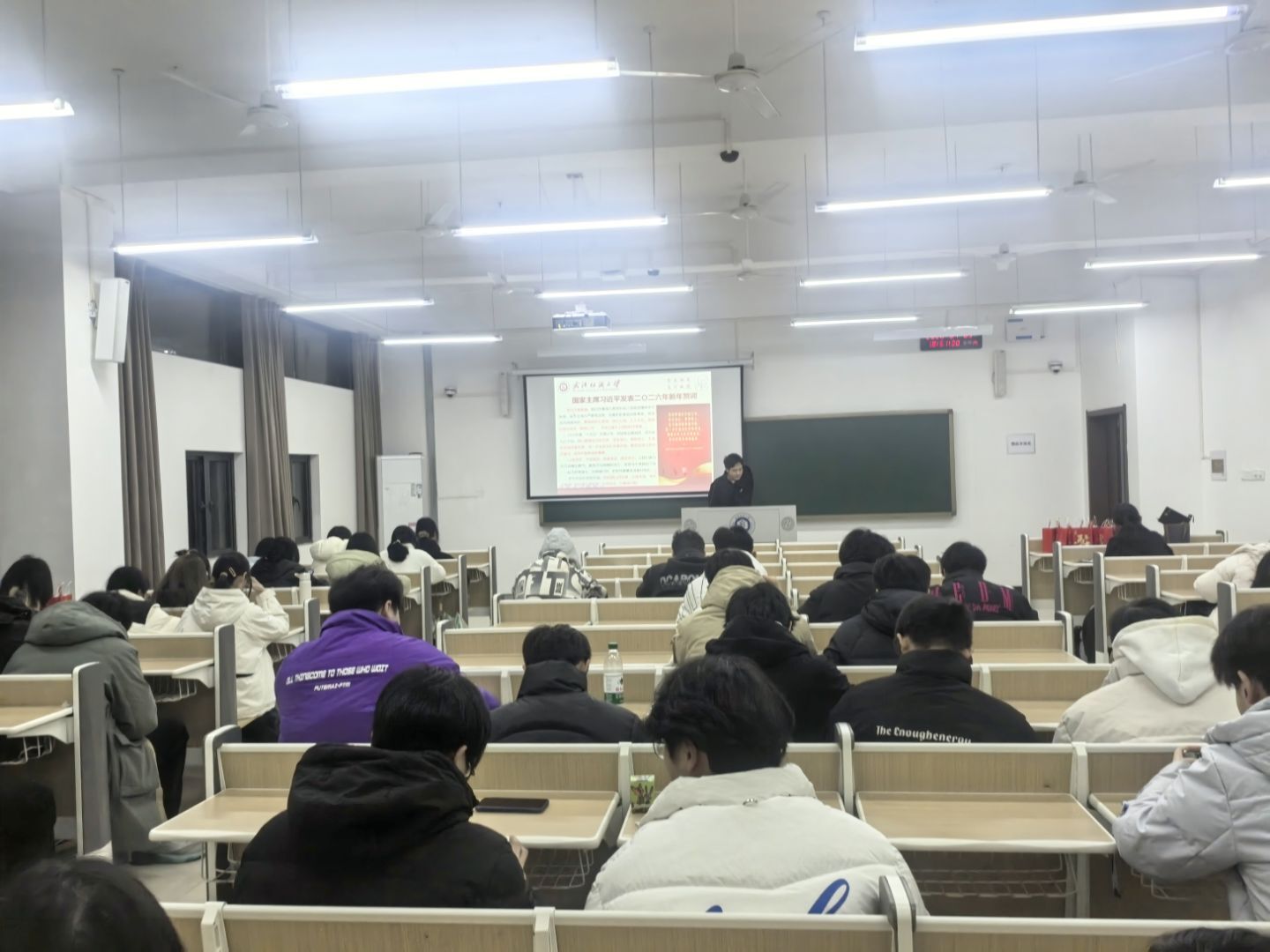 2026年新年贺词。通过回顾国家与学校在过去一年取得的发展成就,同学们深受鼓舞,进一步明确了新时代青年肩负的责任与使命。面对即将到来的期末考试,班会重点开展了诚信应考专题教育。老师们带领学生认真学习了《国家教育考试违规处理办法》及学校考试纪律相关规定,结合典型案例进行了深入解读和警示教育。会议强调,诚信是学术研究的基石,更是大学生应当恪守的基本准则。要求全体同学深刻认识考试违纪的严重后果,自觉遵守考纪、端正考风,以真实的学习成果接受检验,共同维护公平公正的考试环境。