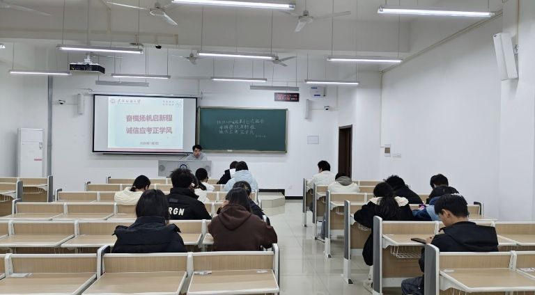 组织开展“奋楫扬帆启新程 诚信应考正学风”主题班会。班会由各年级辅导员、班主任主持,全体本科生共同参与。